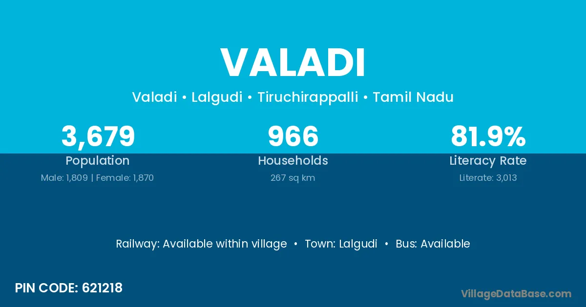 Lalgudi is the nearest town to Valadi village for major economic activities