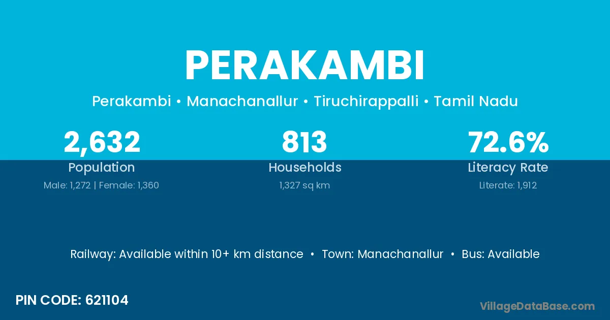 Manachanallur is the nearest town to Perakambi village for major economic activities