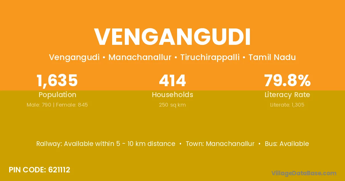 Vengangudi village has a total population of 1,635 people, of which 790 are males and 845 are females.