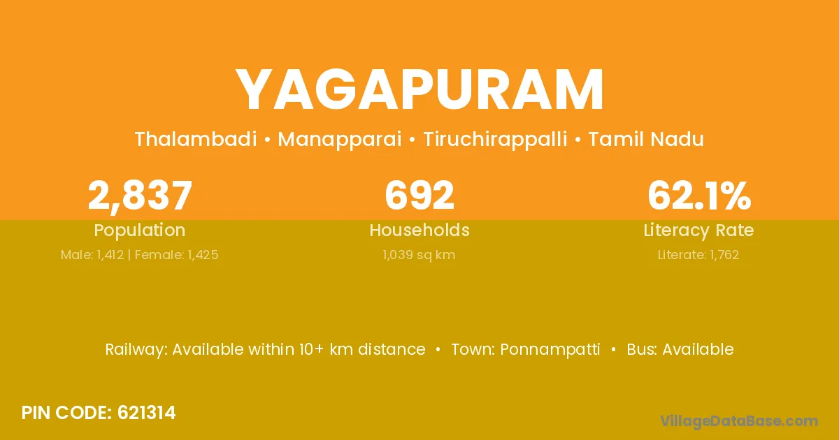 According to Census 2011 information, the village code of Yagapuram village is 621314.