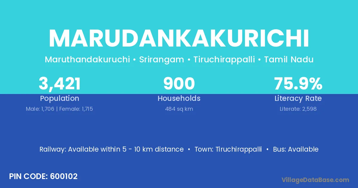 Tiruchirappalli is the nearest town to Marudankakurichi village for major economic activities