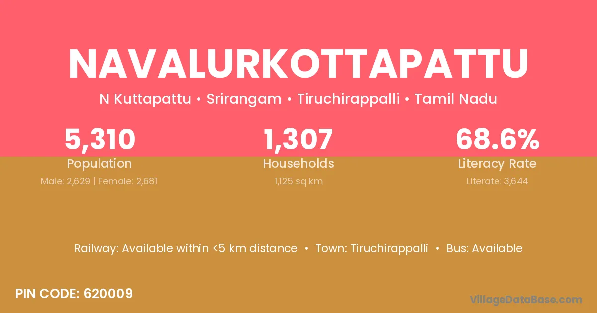 Tiruchirappalli is the nearest town to Navalurkottapattu village for major economic activities