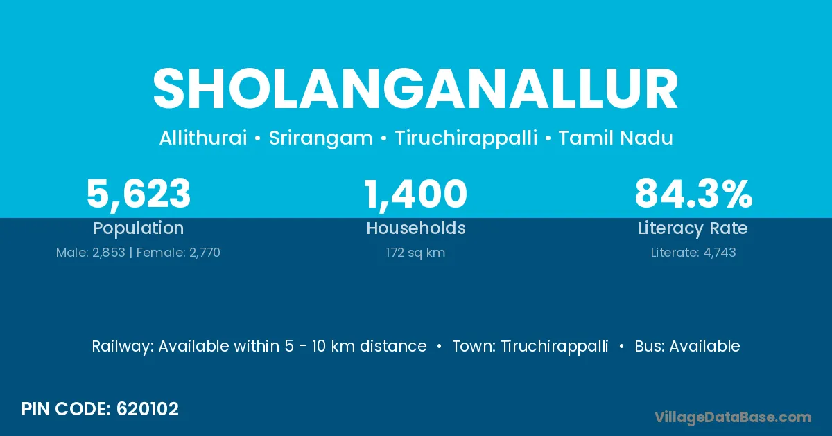 Tiruchirappalli is the nearest town to Sholanganallur village for major economic activities