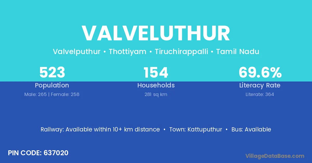 Kattuputhur is the nearest town to Valveluthur village for major economic activities
