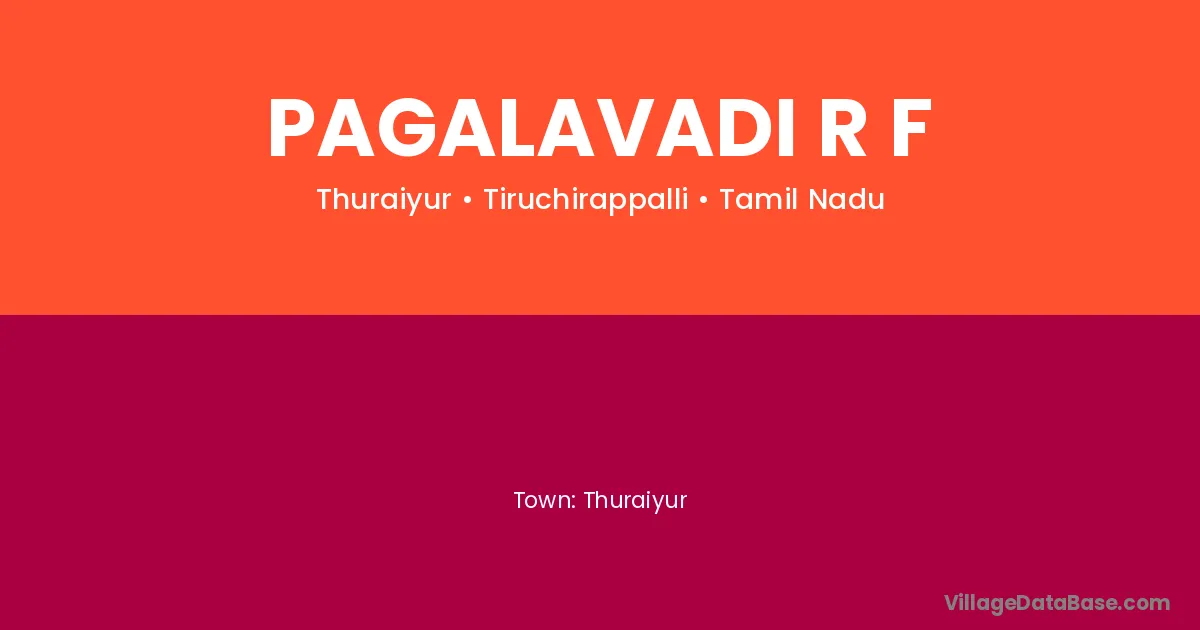 Pagalavadi R F village is located in the Thuraiyur Taluka of the Tiruchirappalli district in Tamil Nadu .