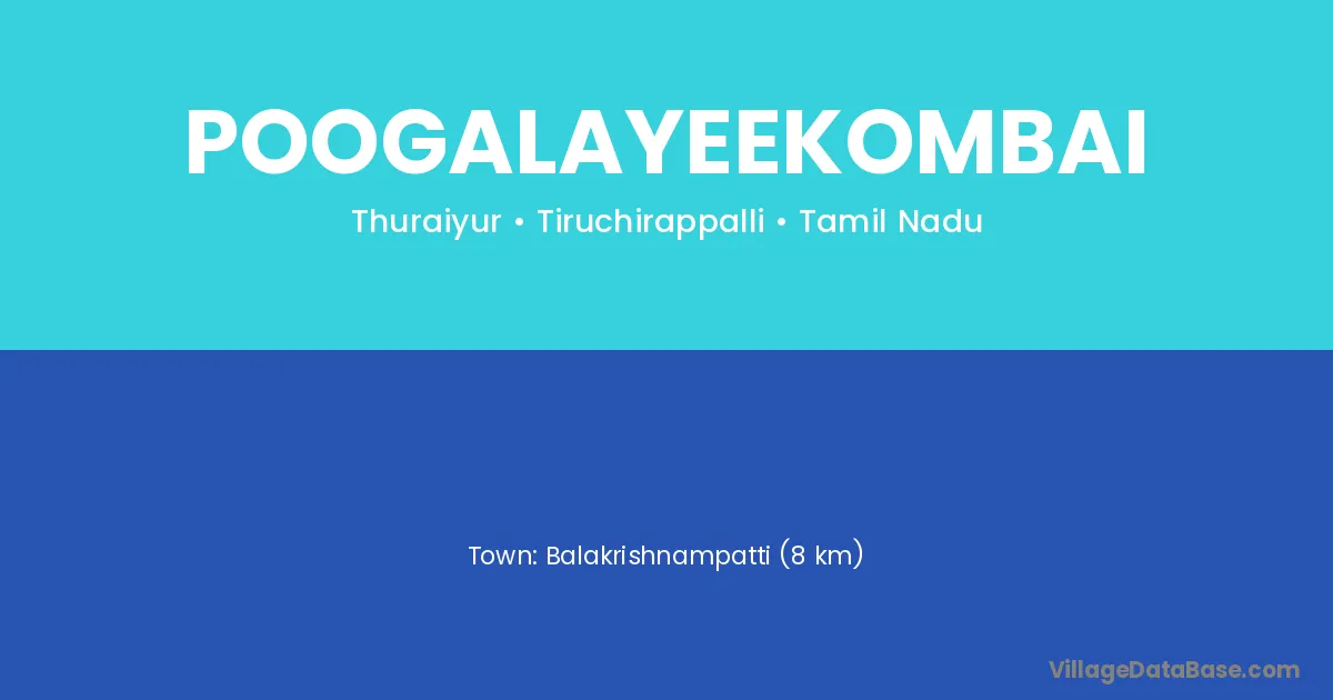 Balakrishnampatti (8 km) is the nearest town to Poogalayeekombai village for major economic activities and is located approximately 8 km away.