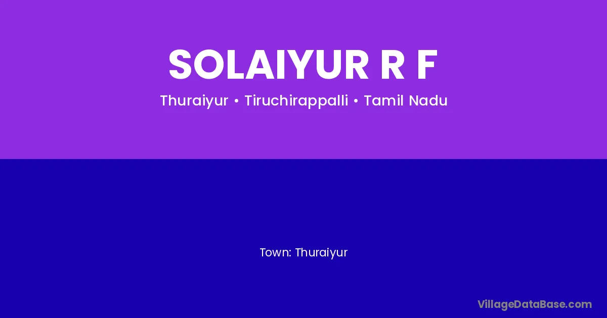 Solaiyur R F village is located in the Thuraiyur Taluka of the Tiruchirappalli district in Tamil Nadu .