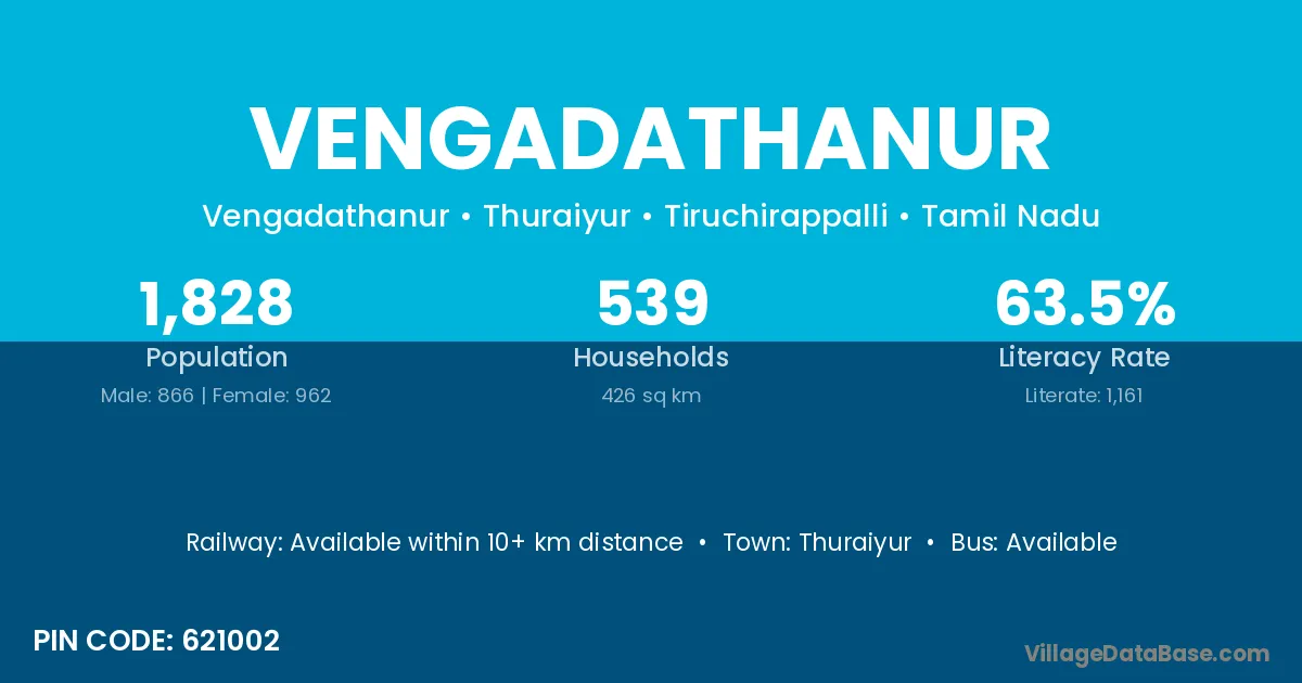 According to Census 2011 information, the village code of Vengadathanur village is 621002.