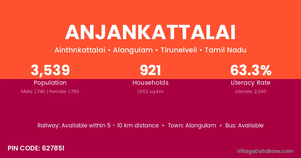 Alangulam is the nearest town to Anjankattalai village for major economic activities