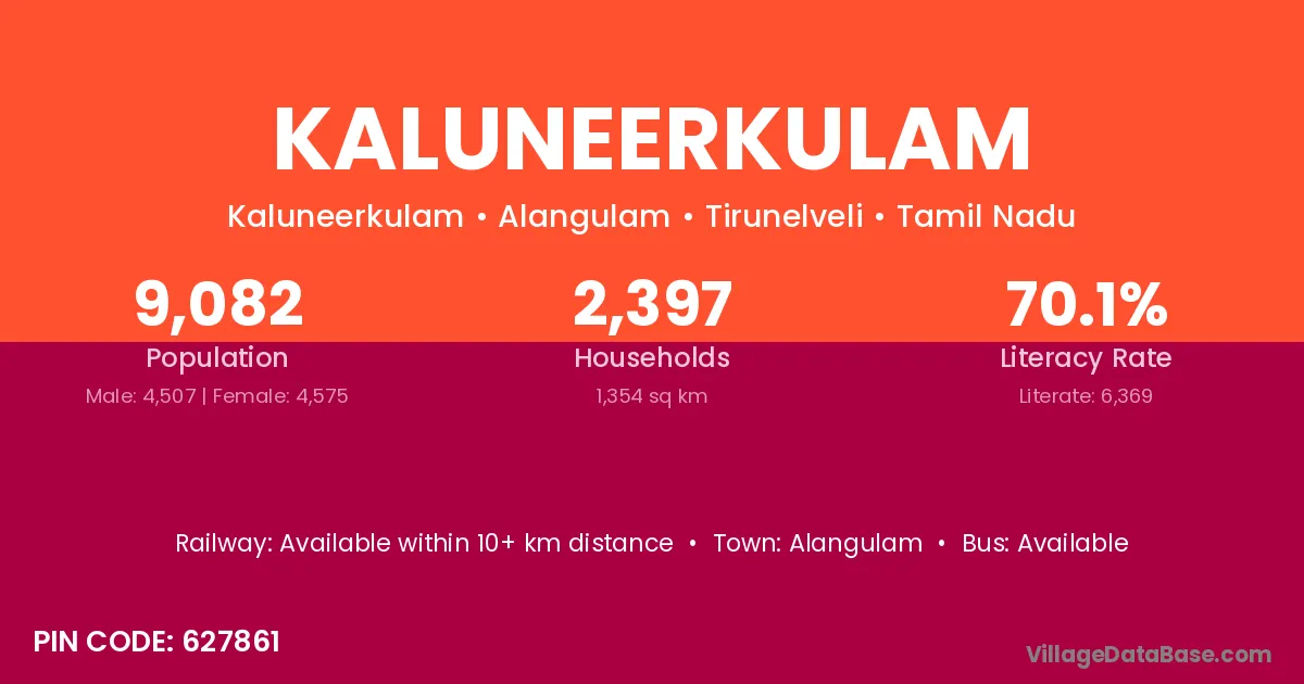 Alangulam is the nearest town to Kaluneerkulam village for major economic activities