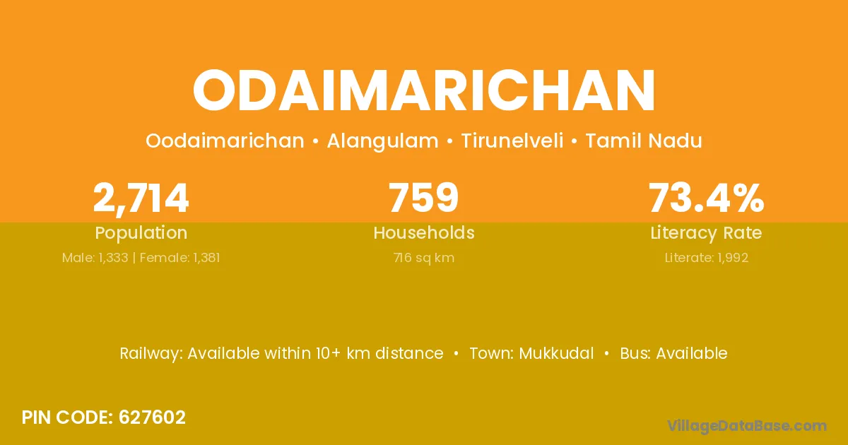 There are approximately 759 households in Odaimarichan village.