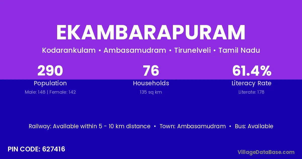 According to Census 2011 information, the village code of Ekambarapuram village is 627416.