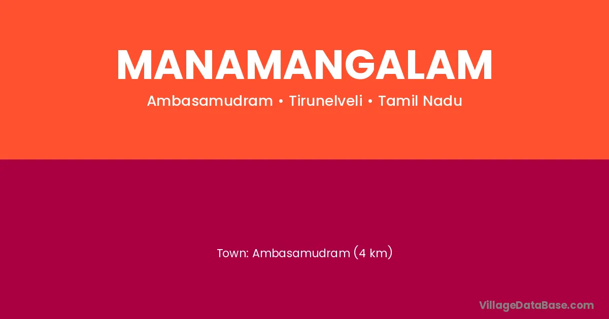 Ambasamudram (4 km) is the nearest town to Manamangalam village for major economic activities and is located approximately 4 km away.
