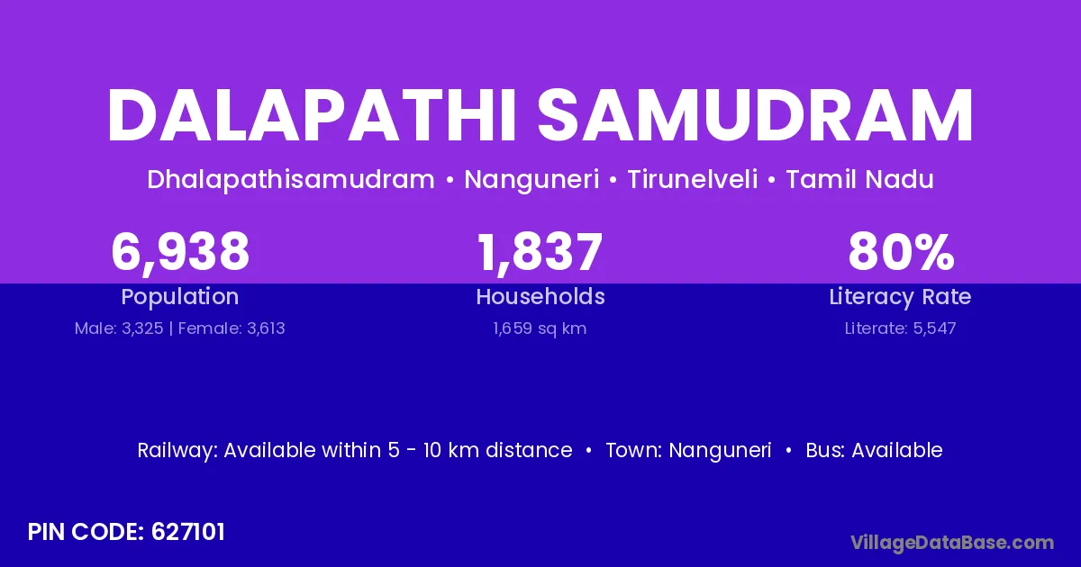 According to Census 2011 information, the village code of Dalapathi Samudram village is 627101.