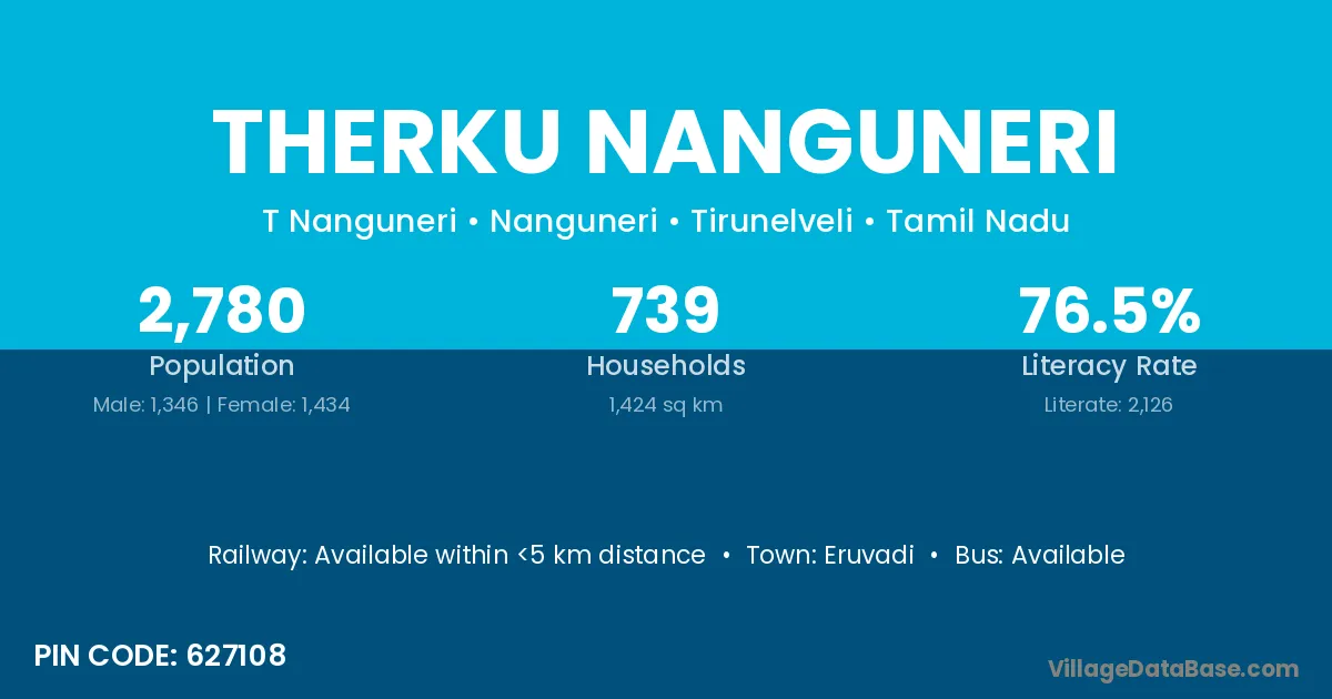 Eruvadi is the nearest town to Therku Nanguneri village for major economic activities