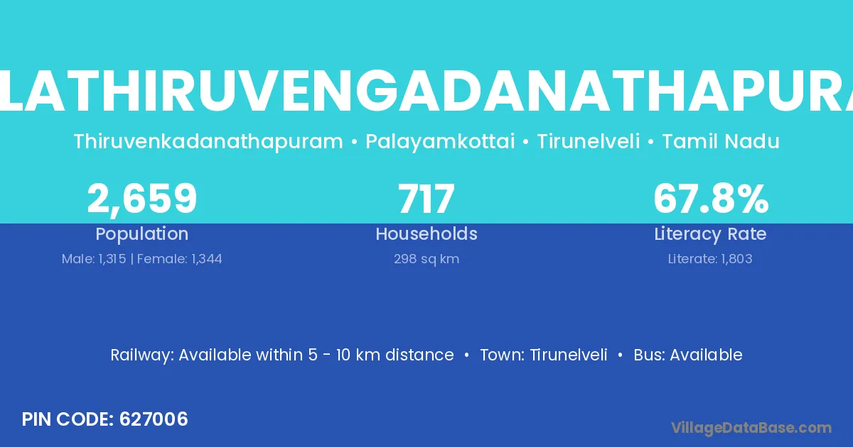 Tirunelveli is the nearest town to Melathiruvengadanathapuram village for major economic activities
