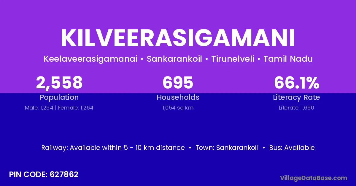 Sankarankoil is the nearest town to Kilveerasigamani village for major economic activities