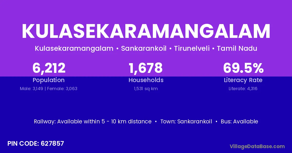 Sankarankoil is the nearest town to Kulasekaramangalam village for major economic activities