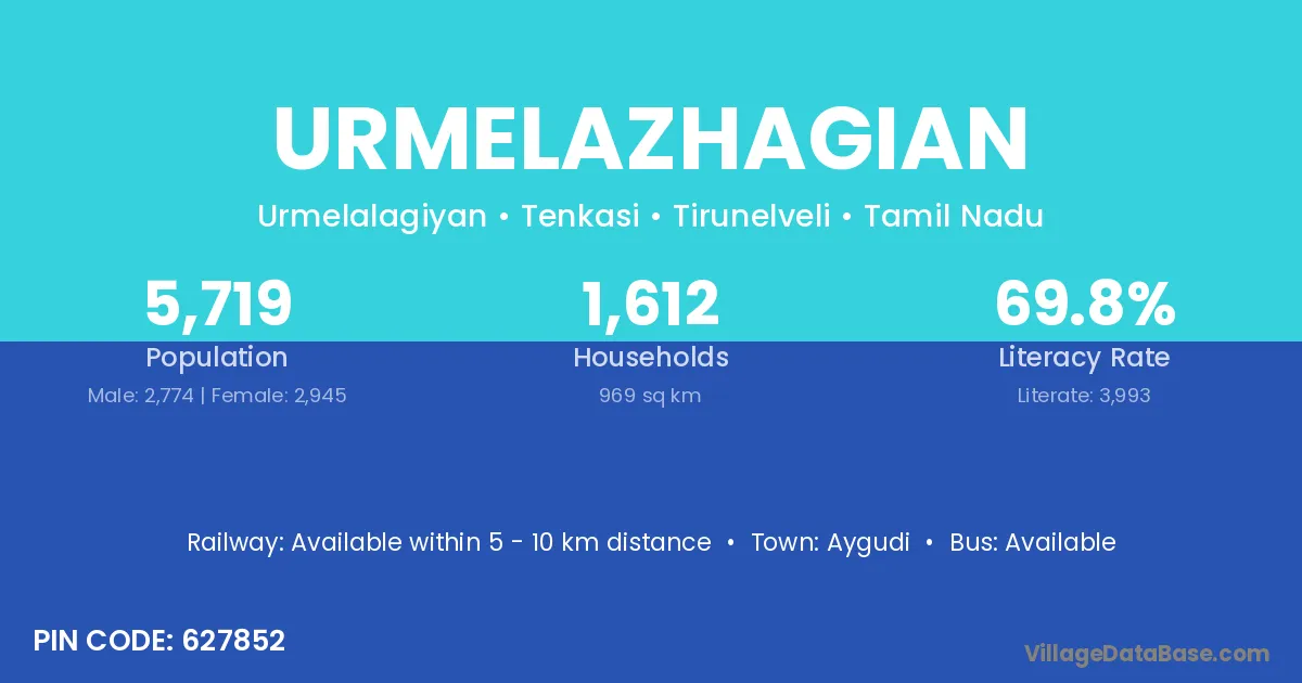 Urmelazhagian village is located in the Tenkasi Taluka of the Tirunelveli district in Tamil Nadu .