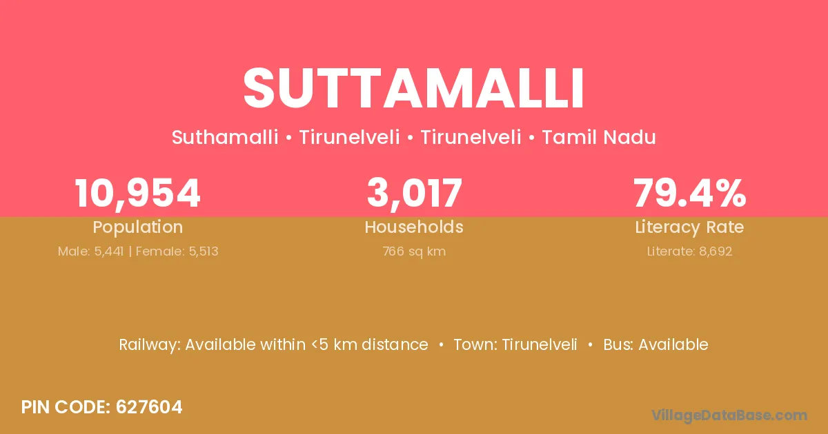 Tirunelveli is the nearest town to Suttamalli village for major economic activities