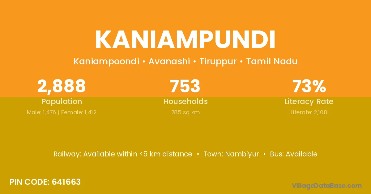 Nambiyur is the nearest town to Kaniampundi village for major economic activities