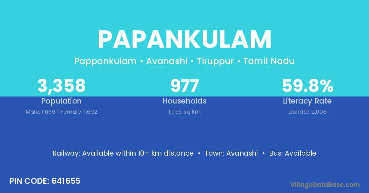 Papankulam village has a total population of 3,358 people, of which 1,666 are males and 1,692 are females.
