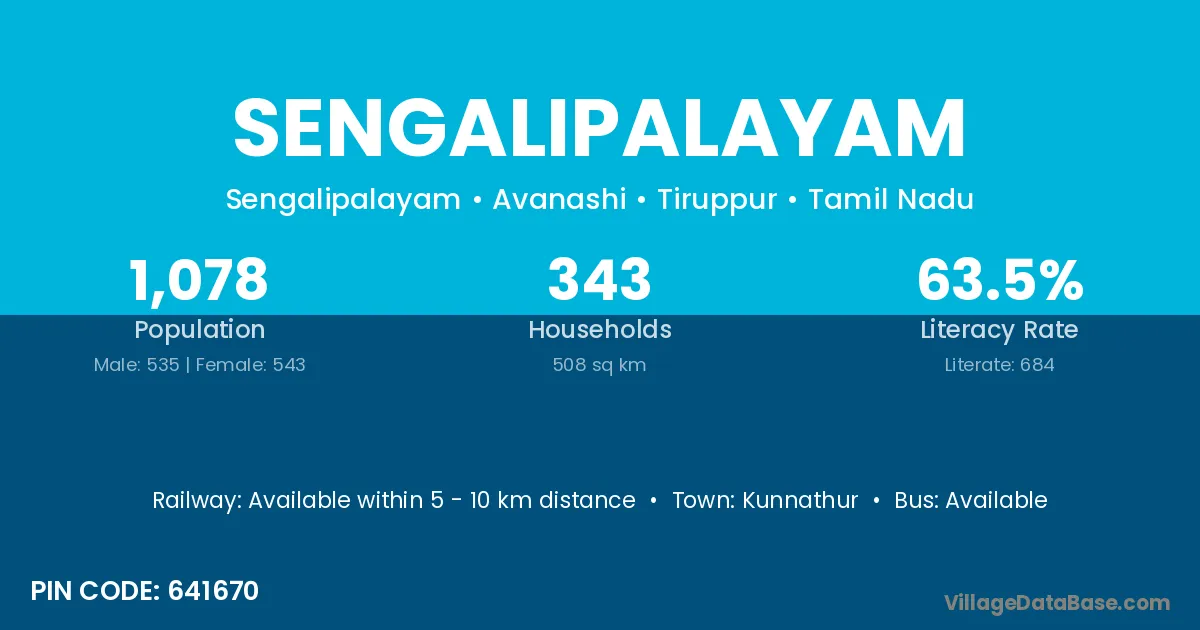 Sengalipalayam village has a total population of 1,078 people, of which 535 are males and 543 are females.