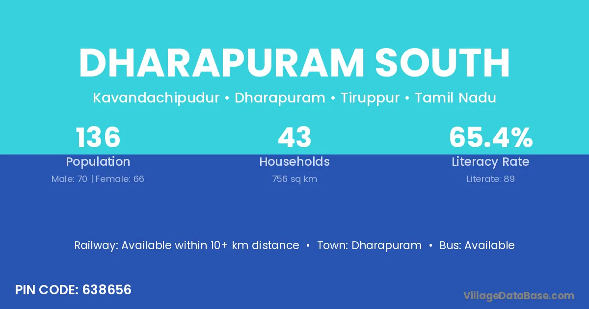 Dharapuram is the nearest town to Dharapuram South village for major economic activities