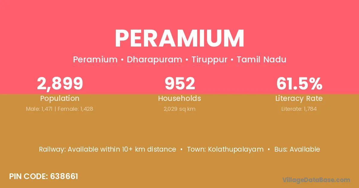Kolathupalayam is the nearest town to Peramium village for major economic activities