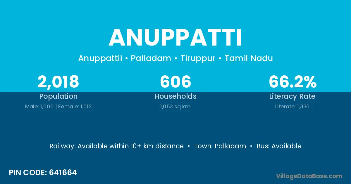 Palladam is the nearest town to Anuppatti village for major economic activities