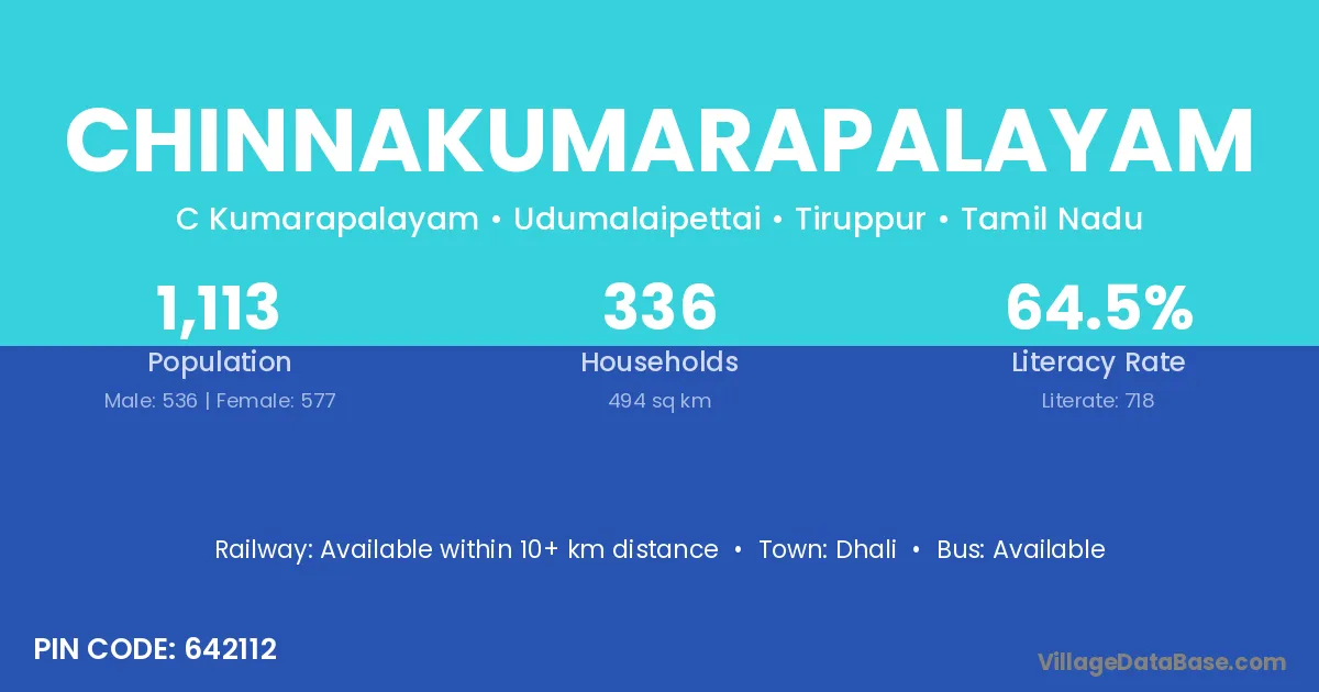 Chinnakumarapalayam village has a total population of 1,113 people, of which 536 are males and 577 are females.