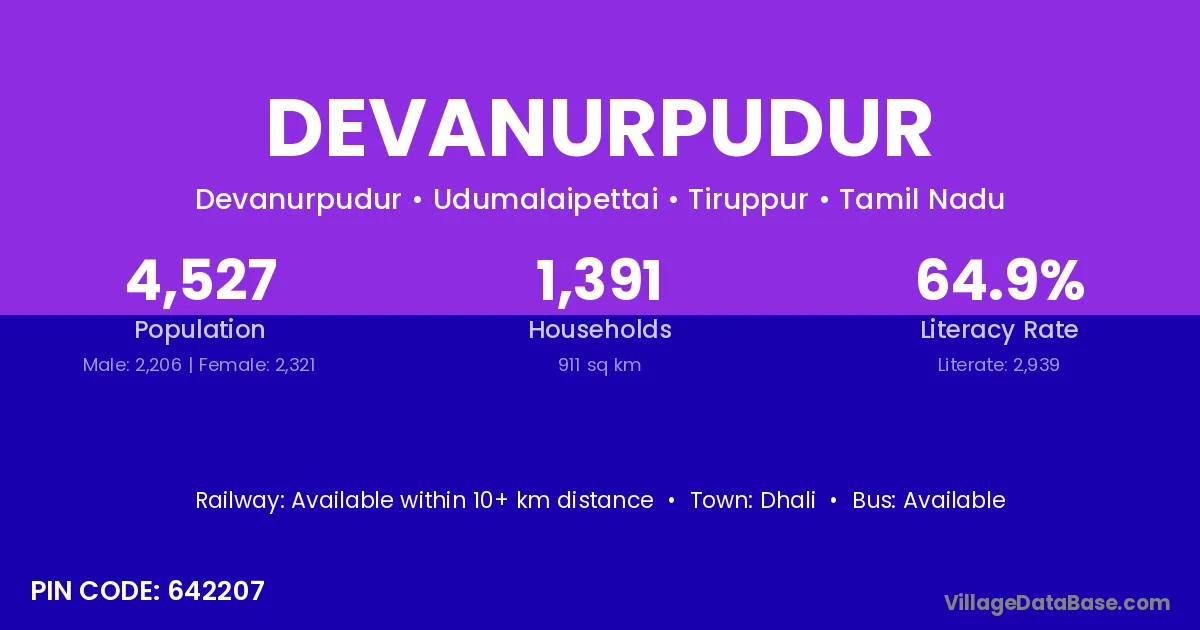 Dhali is the nearest town to Devanurpudur village for major economic activities