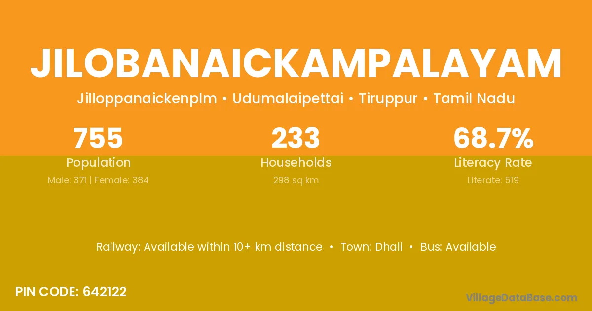 According to Census 2011 information, the village code of Jilobanaickampalayam village is 642122.