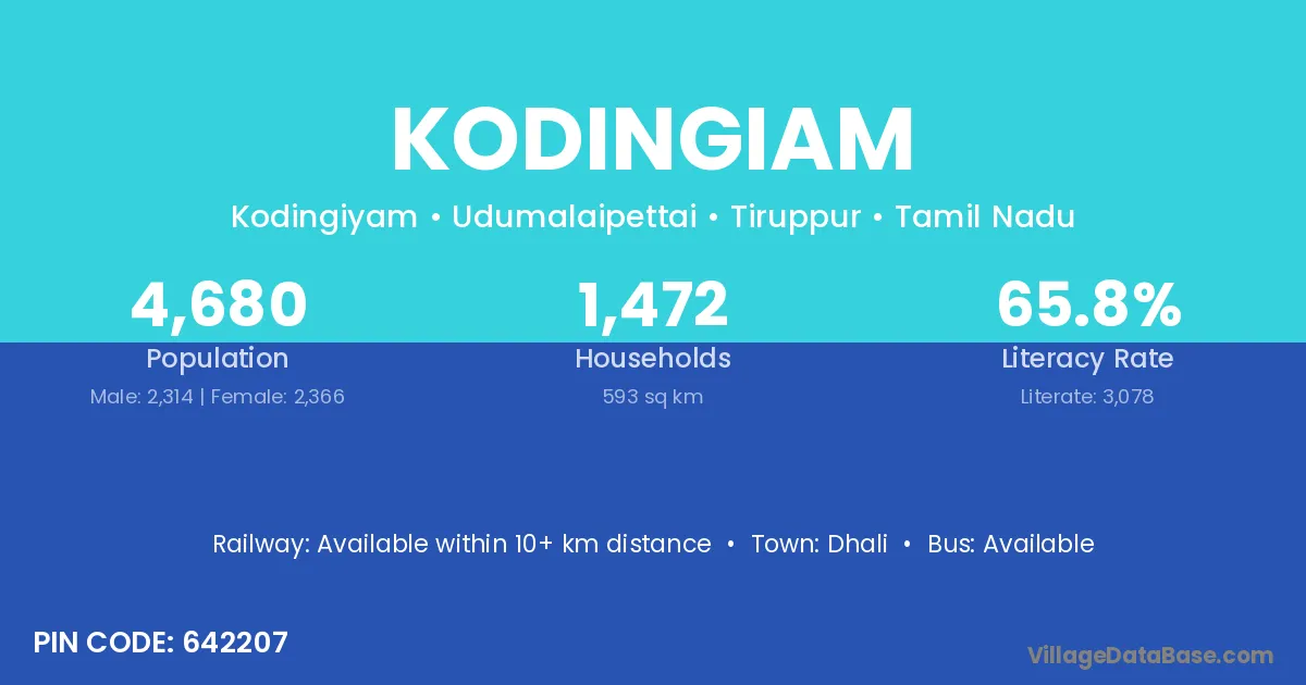 There are approximately 1,472 households in Kodingiam village.