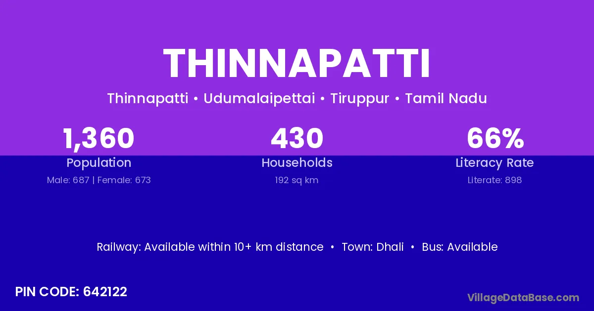According to Census 2011 information, the village code of Thinnapatti village is 642122.