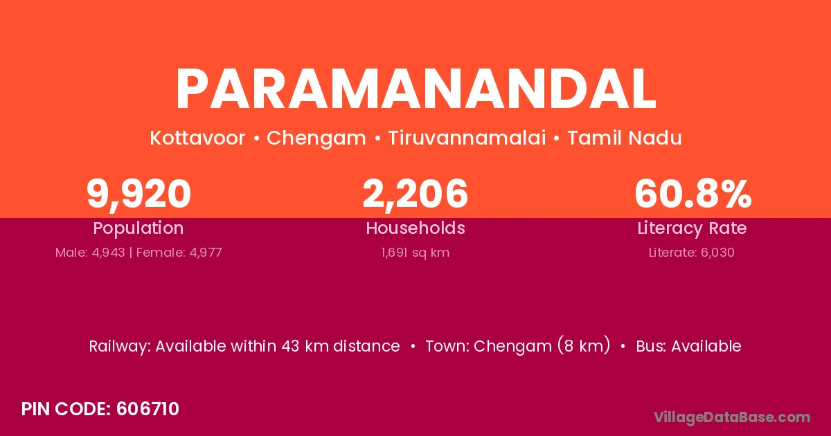 According to Census 2011 information, the village code of Paramanandal village is 606710.