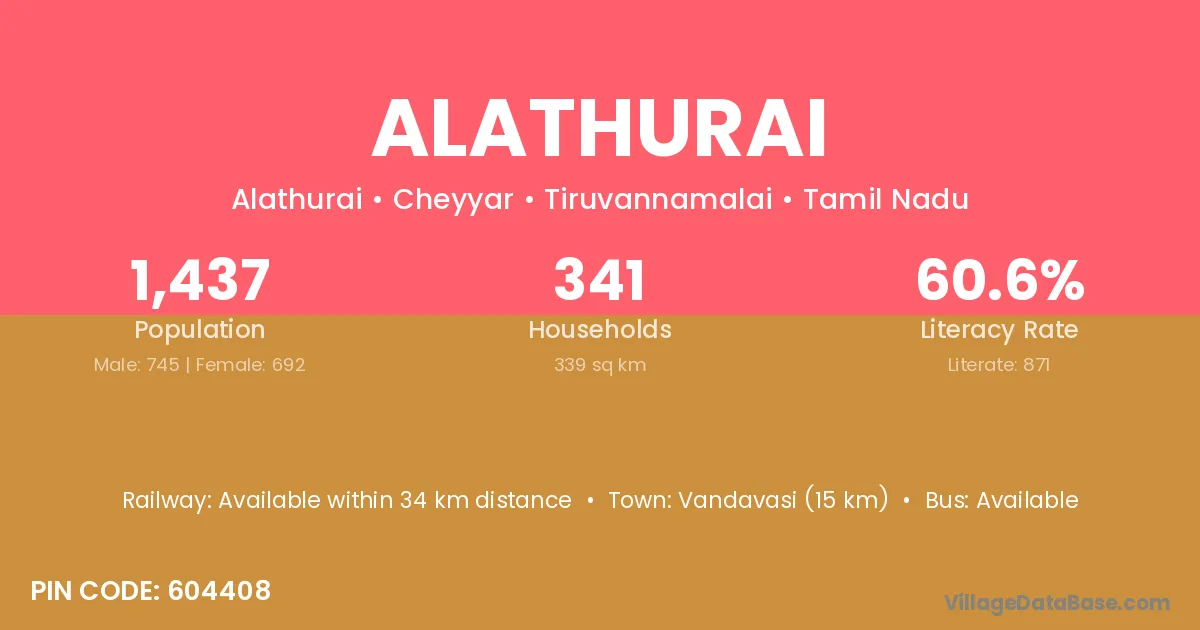 Vandavasi (15 km) is the nearest town to Alathurai village for major economic activities and is located approximately 15 km away.