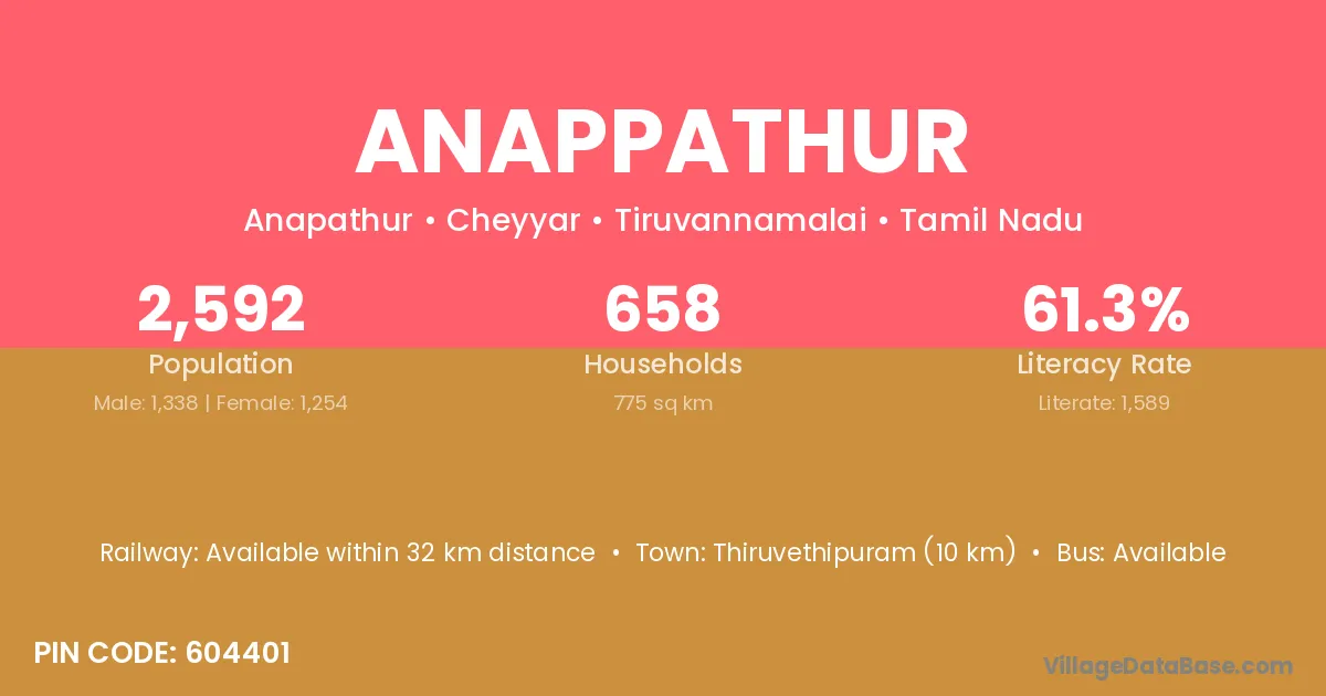 Thiruvethipuram (10 km) is the nearest town to Anappathur village for major economic activities and is located approximately 10 km away.