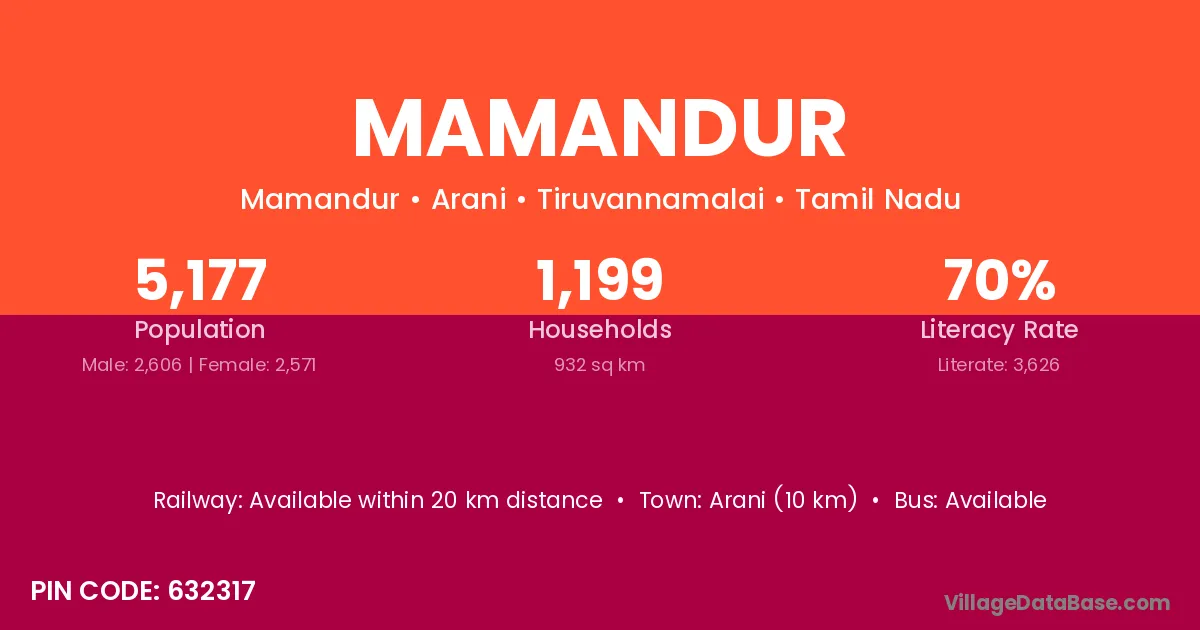 Sevilimedu (4 km) is the nearest town to Mamandur village for major economic activities and is located approximately 4 km away.