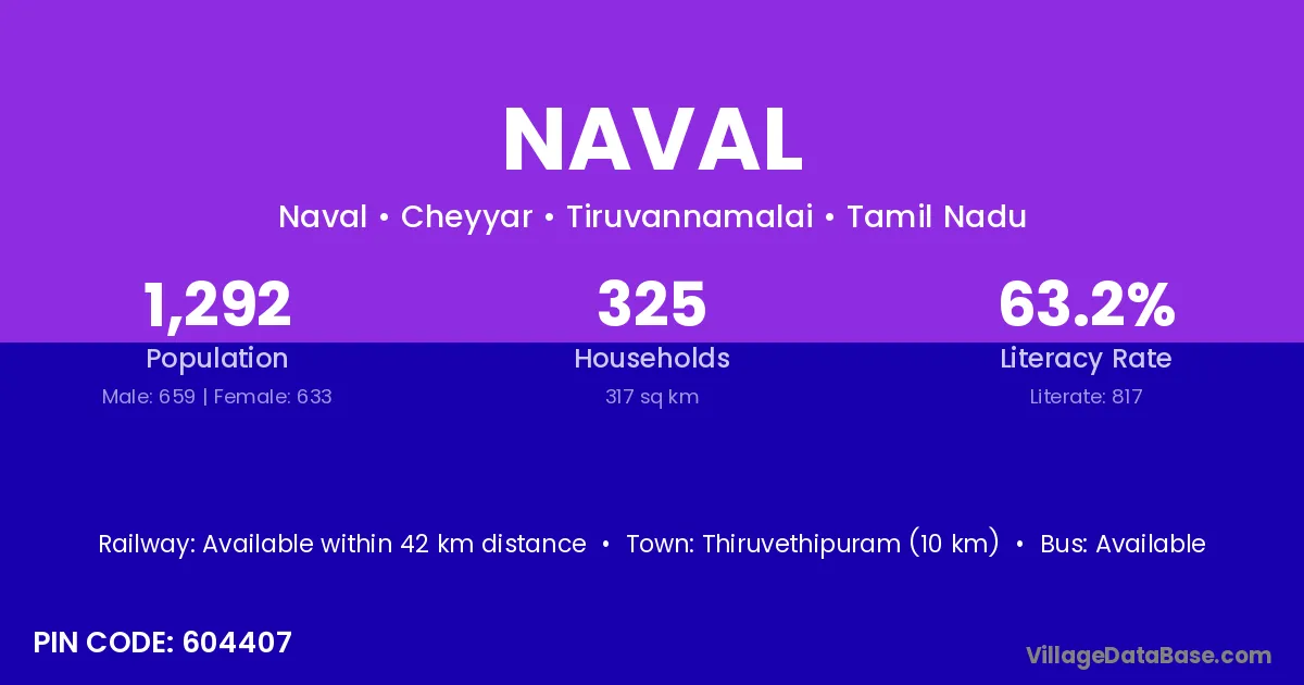 Thiruvethipuram (10 km) is the nearest town to Naval village for major economic activities and is located approximately 10 km away.