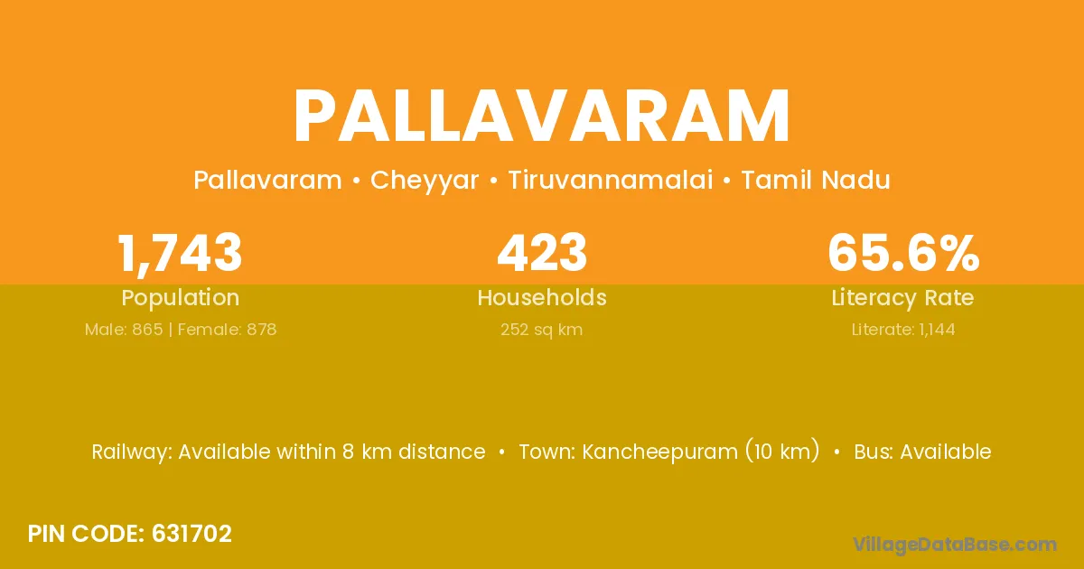 Pallavaram village has a total population of 1,743 people, of which 865 are males and 878 are females.