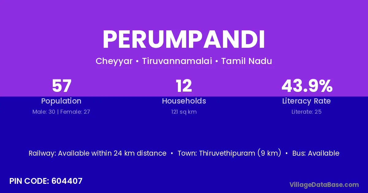 Perumpandi village has a total population of 57 people, of which 30 are males and 27 are females.
