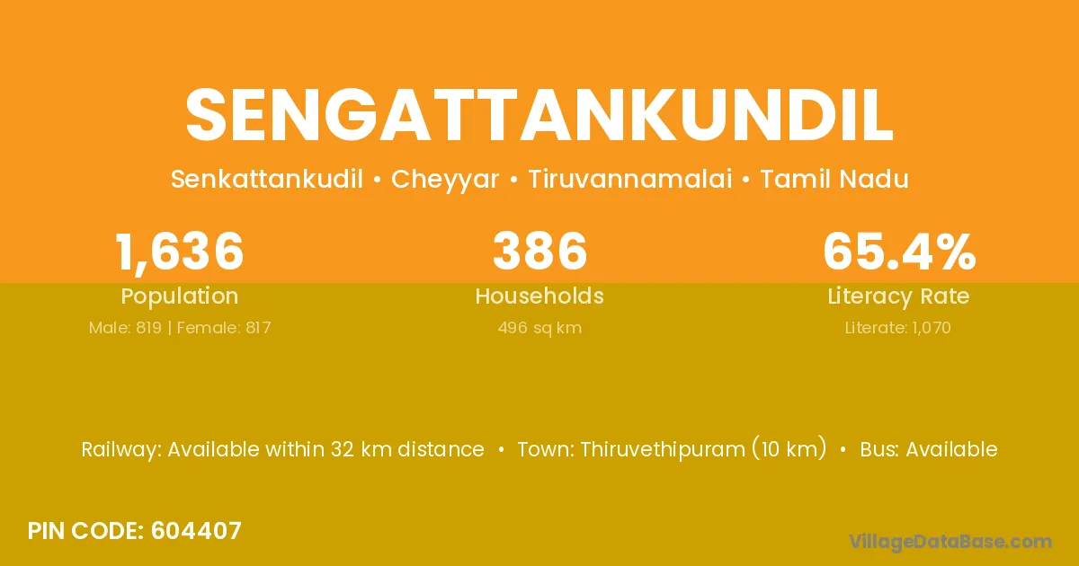 Sengattankundil village has a total population of 1,636 people, of which 819 are males and 817 are females.