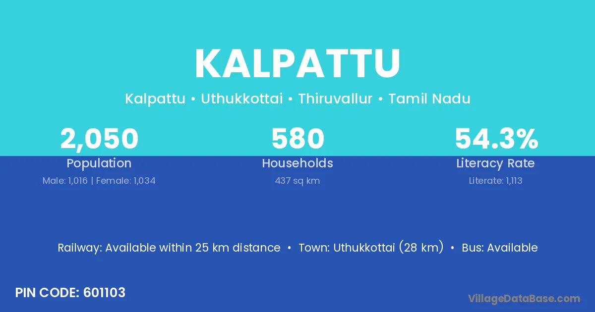 Kalpattu village has a total population of 2,428 people, of which 1,216 are males and 1,212 are females.
