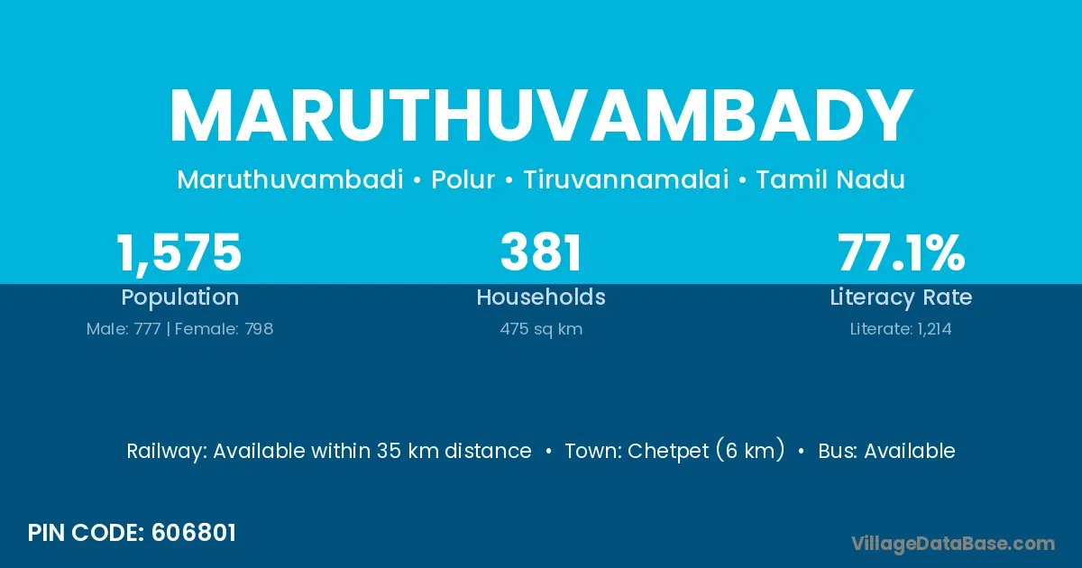 Chetpet (6 km) is the nearest town to Maruthuvambady village for major economic activities and is located approximately 6 km away.