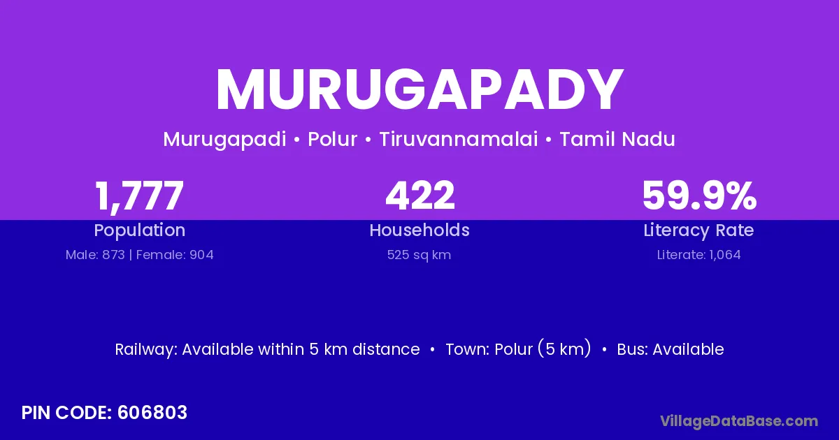 Polur (5 km) is the nearest town to Murugapady village for major economic activities and is located approximately 5 km away.