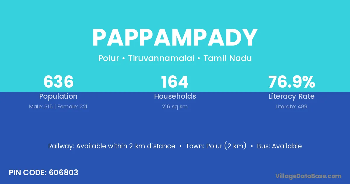 Polur (2 km) is the nearest town to Pappampady village for major economic activities and is located approximately 2 km away.