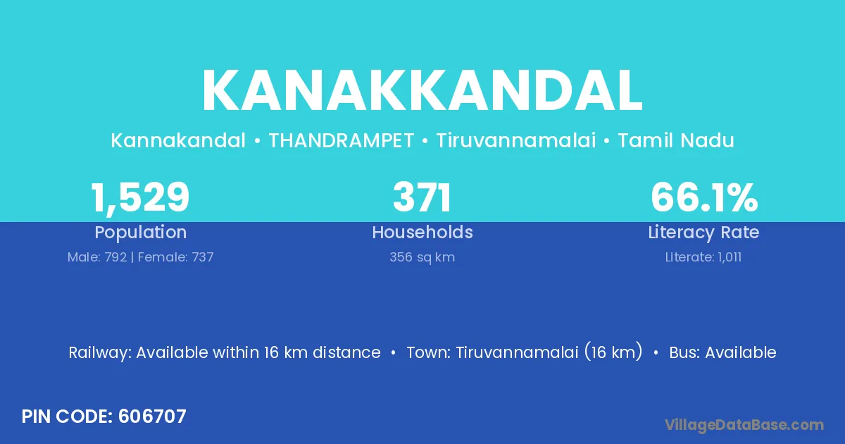 Kanakkandal village has a total population of 1,529 people, of which 792 are males and 737 are females.