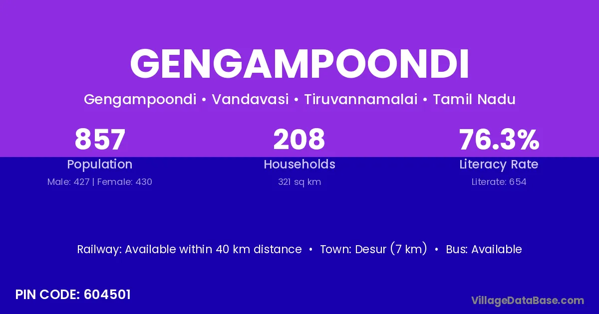 Gengampoondi village has a total population of 857 people, of which 427 are males and 430 are females.