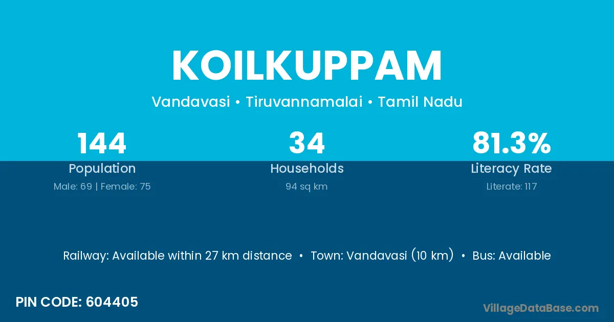 Vandavasi (10 km) is the nearest town to Koilkuppam village for major economic activities and is located approximately 10 km away.
